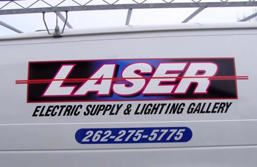 Sign #28 Printed logo and vinyl lettering on a work van. |