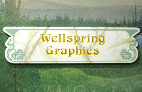 Sign #6 Sandblasted and bevel carved Extira. Simulated marble finish with latex paints and gold-leaf letters. |